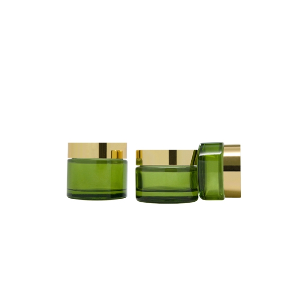 Image Shown (2): Jar in Custom Green Color with JPR-H Metal Shiny Gold Jar Closure