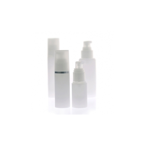 Image Shown (1): Bottle Molded in PP with White Frosted Finish, In-Mold Frosted Cap with Silver Band, Natural Color Pump